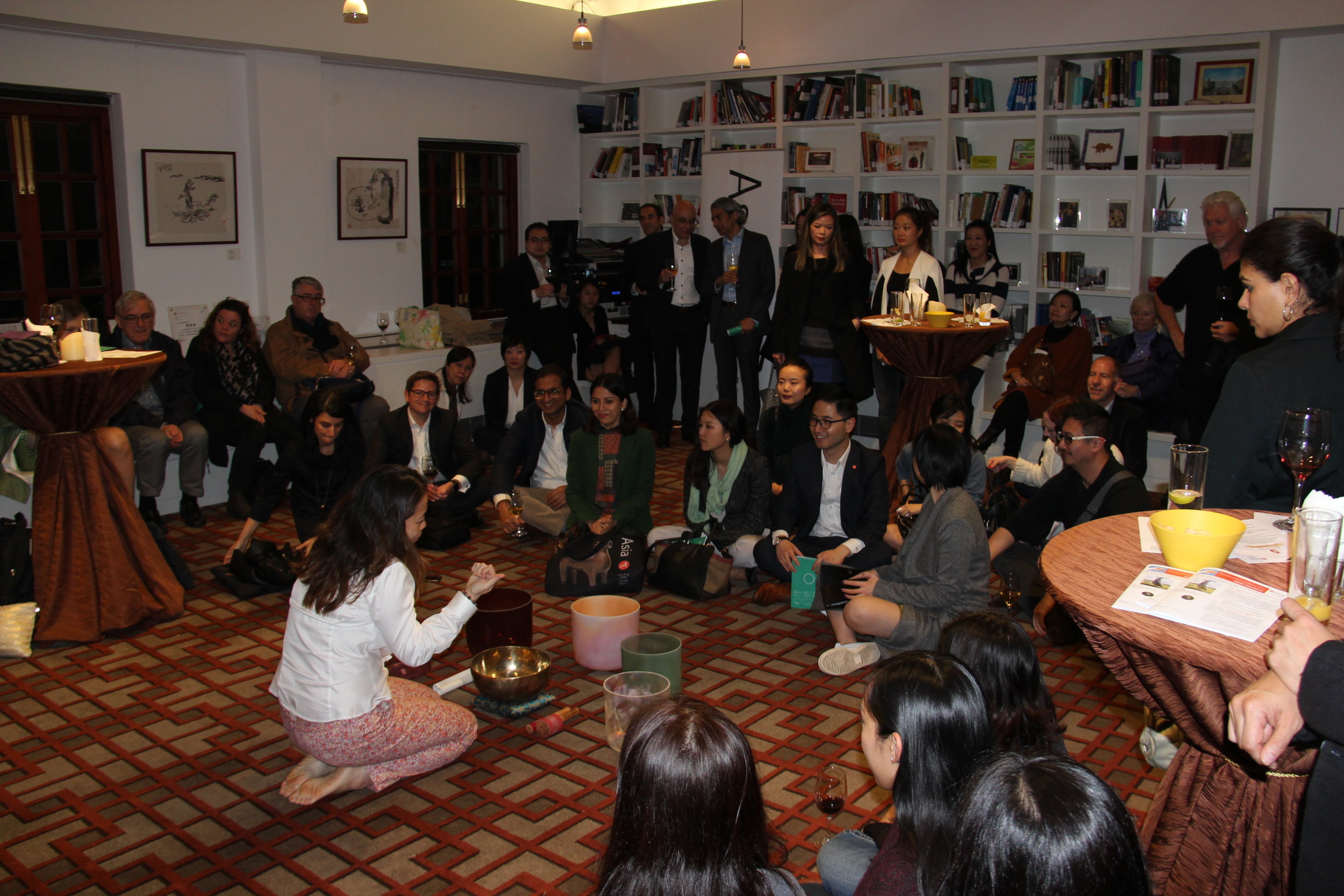 Recently, we had the opportunity to do a singing bowls demonstration to the members of the Asia Society Hong Kong. It was a lovely evening to share with so many people the beauty and power of these singing bowls. Although the demonstration was a very short one, the feedback from the guests were similar – especially that they felt relaxed very quickly and some even felt energised.
